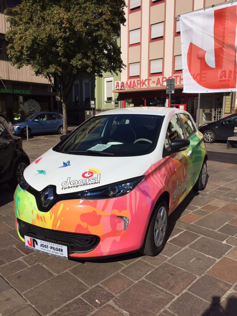 Mehrere Handwerksbetriebe, die in ihrem Fuhrpark Elektroautos betreiben, waren bei der Ausstellung präsent und so präsentierten auch wir wieder einmal unsere Elektroflotte vor Ort.