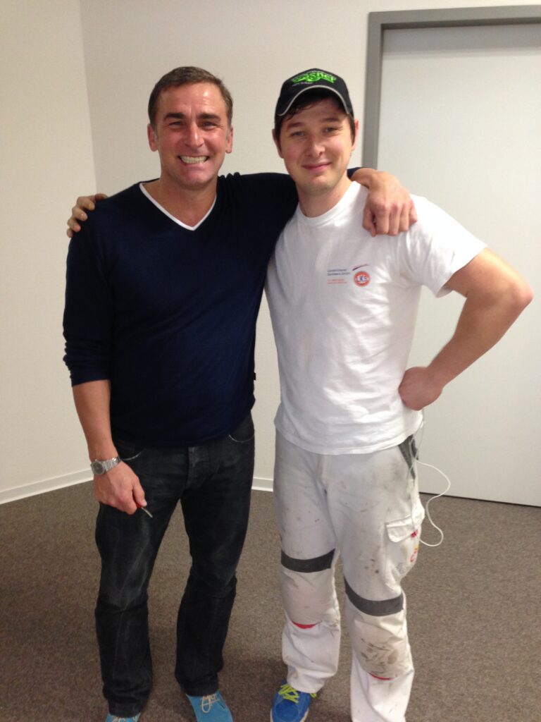 Durch Bodenarbeiten unseres Bodenlegerteams im Fritz Walter Stadion in der Geschäftsstelle des 1. FC Kaiserslautern kam es zu der Begegnung mit dem ehemaligen deutschen Fußballspieler, -trainer und jetzigem Fußballfunktionär Stefan Kuntz.